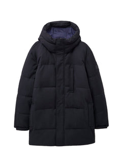 Mid-Length Puffer Jacket – Water-Resistant Polyester, Padded Hood, Reflective Print