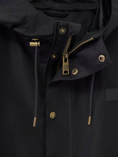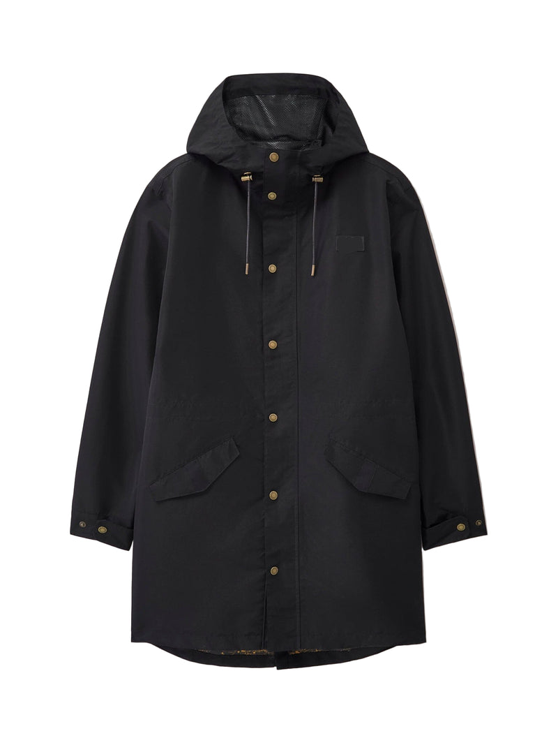 Black Water-Resistant Coat – Polyester, Adjustable Hood, Mesh Lining