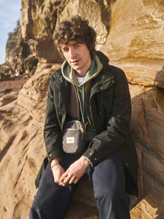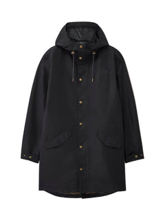 This coat is made from 100% polyester with a waterproof and breathable fabric. It features an adjustable hood and secure snap-button pockets for practicality. A vented back panel and mesh lining provide added comfort and ease of movement, making it suitable for everyday wear and outdoor use.