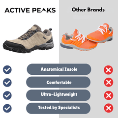 These breathable low-cut walking shoes are designed for outdoor use on countryside paths, forest trails, and light trekking routes. Built to offer a secure and comfortable fit, they support natural movement across uneven terrain. The water-resistant upper and wide toe box improve usability in changing trail conditions, while the cushioned insole and grippy outsole help reduce fatigue on extended walks. A trail-tested choice from Active Peaks for outdoor enthusiasts who value stability and comfort.