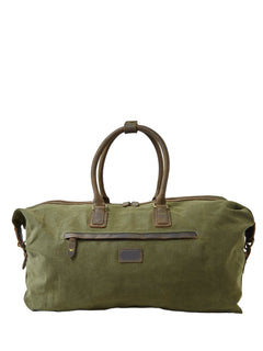 This 25-litre holdall bag is made from water-resistant waxed cotton with genuine leather trims for durability. It includes a double-zip closure, trolley pass-through sleeve, internal pockets, and a key clip for secure storage. Designed for practical use, it is suitable for travel, commuting, or weekend trips.