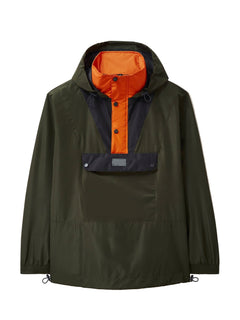Khaki Water-Resistant Jacket – Polyester, Kangaroo Pocket, Relaxed Fit