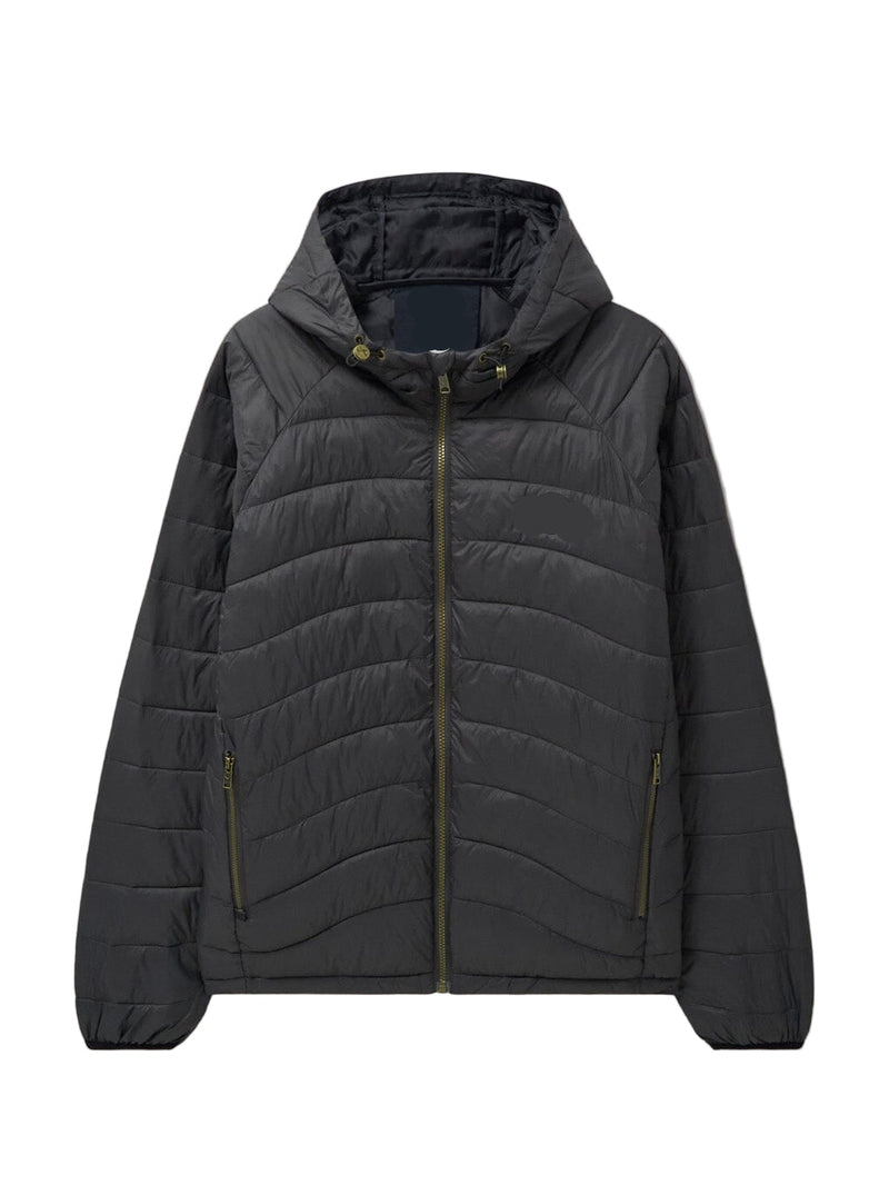 This insulated jacket is made from water-resistant nylon with lightweight padding to provide warmth and protection in cooler weather. It includes secure zip pockets, elasticated cuffs, and a reflective wave detail for added visibility. Designed with a practical fit for everyday wear and outdoor use.