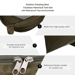 This lightweight camping hammock is designed to provide a comfortable and practical resting space during outdoor adventures. Easy to set up and carry, it suits moments of relaxation after a day of hiking, camping, or exploring. Built from durable polyester and featuring essential accessories, it offers reliable support for extended use in nature. Active Peaks ensures a trail-ready design focused on outdoor functionality.