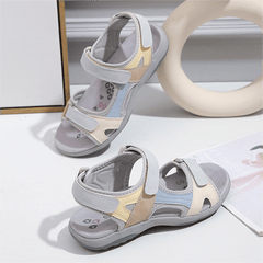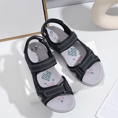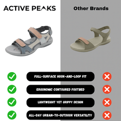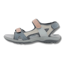 These lightweight walking sandals provide comfort, breathability, and secure footing for warm-weather walks, travel, and everyday outdoor activities. Made with a soft synthetic upper that allows airflow, they feature a cushioned, contoured footbed that supports the arch and absorbs impact. The hook-and-loop strap ensures an adjustable fit, while the patterned rubber outsole provides reliable traction on pavements, trails, and damp decking. Designed for all-day comfort, they combine practicality with an easygoing summer style.