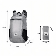 This lightweight foldable hiking backpack is designed for day walks, travel, and minimalist outdoor excursions. With its compact design, it folds down to fit easily into a suitcase or larger rucksack, making it a convenient choice for on-the-go use. Built from water-resistant ripstop nylon, it helps shield your essentials from light rain and splashes. Featuring a spacious main compartment, side mesh pockets, and padded adjustable straps, this backpack balances portability with everyday practicality.