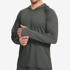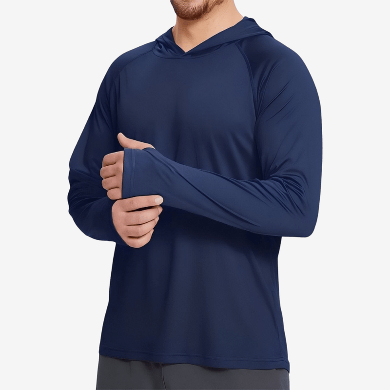 Designed for warm-weather hikes and extended time outdoors, this men's hiking t-shirt provides UPF 50+ certified UV protection. The lightweight, breathable polyester fabric efficiently wicks away moisture to help keep you dry and comfortable during prolonged activity. With a fitted hood and long sleeves, it offers extended coverage against sun and wind. Ideal for trail walks, hill climbs, and summer trekking under variable conditions, this garment from Active Peaks supports confident movement in the outdoors.