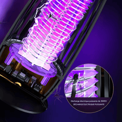 A lightweight, portable lamp that combines UV attraction and electric grid technology to reduce insect disturbances and enhance outdoor comfort.