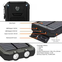 Solar Power Bank Waterproof Shockproof 10000 mAh