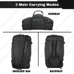 • Carrying Options: Convertible 3-in-1 design — backpack, duffel, or shoulder bag